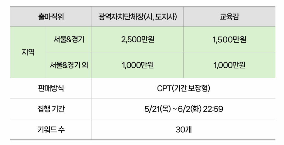 아무리 급해도 5월 21일 이전에는 선거광고를 집행할 수 없습니다.