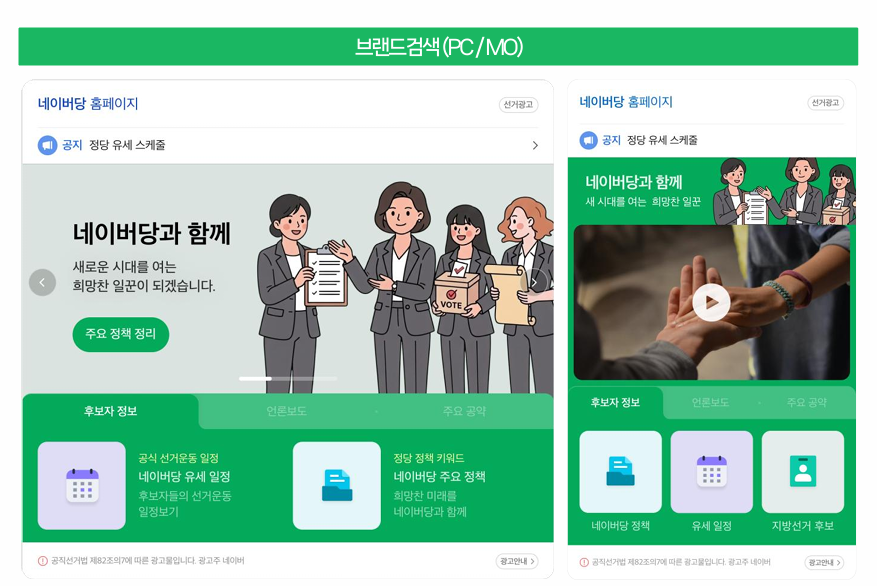 네이버 선거광고는 크게 정당과 후보자용으로 구분됩니다.