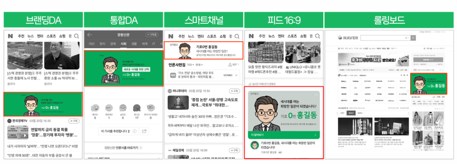 모두 로그인 정보와 쿠키 값을 기반으로 18세 이상 유권자 타겟팅이 적용되는 광고 상품이며