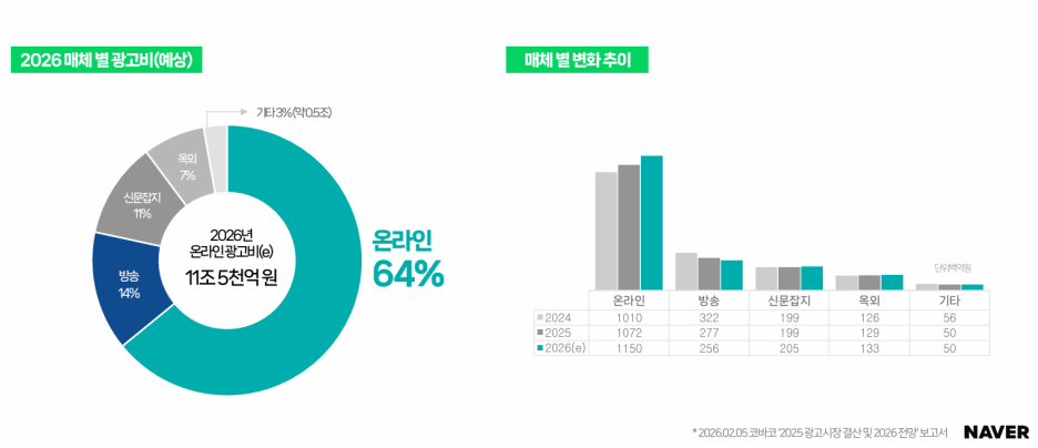 2026년 전체 광고비 중 64%(약 11.5조 규모)를 차지하는 온라인 광고는 광고시장을 주도하고 있습니다.