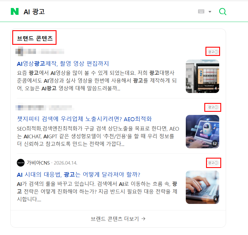 파워컨텐츠는 네이버 검색 결과의 '브랜드 콘텐츠' 탭 상단 및 '블로그 탭' 상단에 노출되는 광고 상품입니다. 파워링크처럼 외부 웹사이트 링크를 연결하는 게 아니라, 네이버 블로그나 카페에 직접 작성된 포스팅을 소재로 활용합니다. 파워링크와 가장 크게 다른 점은 두 가지입니다. 첫째, 랜딩 페이지가 네이버 블로그와 네이버 카페로 한정됩니다. 블로그와 카페 랜딩이 필수이기 때문에 홈페이지 직접 전환을 추적하기 어렵지만, 반대로 말하면 콘텐츠에 대한 신뢰도가 높은 사용자가 유입됩니다. 둘째, 네이버가 사전에 허용한 약 100,000여 개의 지정 키워드 안에서만 광고를 집행할 수 있습니다. 이 키워드들은 공통적으로 '정보를 찾으려는 의도'가 강한 검색어들입니다. 병원 진료 전에 증상을 검색하거나, 구매 전에 제품을 비교하는 사용자들이 주로 치는 키워드라고 보면 됩니다. ▶ 파워링크 vs 파워컨텐츠 비교 ![]() ▶ 노출 예시 (브랜드 컨텐츠 탭) ![]() 네이버 파워컨텐츠를 써야 하는 이유 3가지 ① 입찰가가 현저히 낮습니다 동일 키워드 기준으로 파워컨텐츠의 CPC는 파워링크보다 훨씬 저렴합니다. 이유는 구조적입니다. 콘텐츠 검수 기준이 까다롭고, 대행사 수수료가 자동 지급되지 않아 영업이 활발하지 않습니다. 진입 장벽이 높은 만큼 경쟁자가 적고, 그만큼 단가도 낮게 유지됩니다. 파워링크 예산이 빠듯하게 느껴지는 업종이라면 네이버 파워컨텐츠부터 테스트해볼 가치가 있습니다. 상위에 노출되려면 경쟁사보다 더 높은 입찰가를 설정해야 하는 경쟁 입찰 방식이라는 것은 모두 알고 계실거에요. 실제 예시를 들어 말씀드리면, '뷰티마케팅'이라는 검색어로 광고를 진행하고 있는 업체 수만 보더라도 파워링크는 112건인데 반해, 파워컨텐츠 노출 업체는 단 6건만 노출 중입니다. PC와 모바일 평균 입찰가도 1만원 이상 차이가 나죠. [뷰티마케팅] 파워링크 1위 평균 입찰가 > PC: 19,620원/ MOBILE: 13,670원 [뷰티마케팅] 파워컨텐츠 1위 평균 입찰가 > PC: 1,600원/ MOBILE: 570원 ▶ [뷰티마케팅] 키워드 검색결과 : 파워링크 112건 vs 파워컨텐츠 6건 노출 중. (※ 2026.04.24 검색 기준) 1) 파워링크 캡처 (112건 노출 중) ![]() 2) 파워컨텐츠 캡처 (6건 노출 중) ![]() ② 정보 탐색 의도가 높은 사용자에게 닿습니다 '브랜드 콘텐츠 or 블로그' 탭을 클릭하는 사용자는 이미 통합검색 결과에서 한 번 더 정보를 찾겠다고 능동적으로 행동한 사람들입니다. 구매 전 리서치, 시술 전 후기 탐색, 서비스 비교 등 소비자 여정의 핵심 구간에서 광고가 노출됩니다. 단순 노출보다 훨씬 의미 있는 접점입니다. ③ 광고인데 광고처럼 안 보입니다 네이버가 직접 신뢰성을 검토하는 절차를 거쳐야 광고가 게재됩니다. 덕분에 사용자 입장에서는 일반 블로그 포스팅을 읽는 것과 큰 차이를 느끼지 못합니다. 거부감 없이 콘텐츠를 소비하게 되고, 이는 자연스럽게 브랜드 인지도와 유입 증가로 이어집니다. 광고 등록, 이렇게 하면 됩니다 Step 1. 키워드 확인 네이버 검색 광고 시스템에 접속해 파워컨텐츠 캠페인을 생성합니다. 사용 가능한 키워드 목록은 엑셀 파일로 다운로드할 수 있으며, 수천 개의 키워드가 포함되어 있습니다. 내 비즈니스와 연관된 키워드가 목록에 있는지 먼저 확인하는 게 출발점입니다. ▶ 키워드 리스트 다운로드 링크: https://ads.naver.com/help/faq/1127?t=1777021026445 ![]() Step 2. 소재 작성 및 등록 블로그 포스팅을 소재로 연결합니다. 이때 중요한 것은 소재 설명이 실제 포스팅 내용과 일치해야 한다는 점입니다. 검수 과정에서 불일치하면 노출이 제한됩니다. 업체명은 반드시 사업자 등록증과 동일하게 표기해야 하며, 오차가 있으면 재검토 요청이 필요합니다. Step 3. 세부 설정 광고 노출 지역, 노출 시간, 매체를 세밀하게 설정할 수 있습니다. 파트너 매체(증권 사이트, 뉴스 등)를 제외하고 뷰 탭 상단 노출에만 집중하는 전략도 유효합니다. 로컬 비즈니스라면 지역 타겟팅을 타이트하게 설정해 예산 낭비를 줄이는 것이 좋습니다. Step 4. 검수 통과 후 모니터링 노출 순위는 입찰가와 네이버의 콘텐츠 신뢰성 평가 두 가지에 의해 결정됩니다. 초기에는 순위가 낮더라도, 콘텐츠 품질과 체류 시간 등이 누적되면서 자연스럽게 상위로 올라오는 경우가 많습니다. ![]() 2026 전략: 네이버 광고 생태계가 바뀌었다