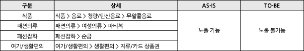 [2] 기존에 노출 가능했던 상품 카테고리 중 일부가 노출 불가 카테고리로 변경됩니다. (상세 내역은 표2 참고)