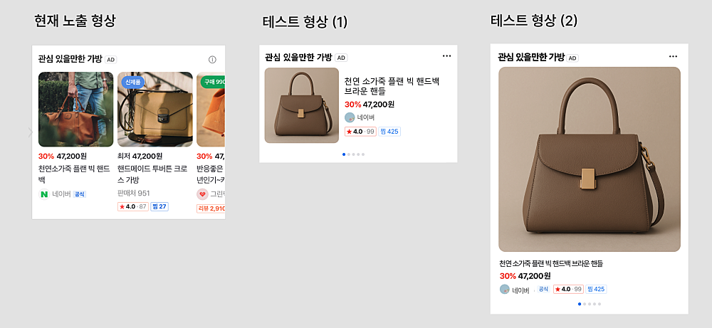 ■ 테스트 내용 - 현재 노출되는 형상 포함하여 아래 세 가지 안으로 테스트 진행