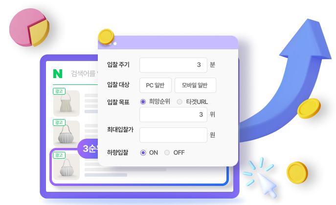 - 10원 단위 입찰가 조정을 통해 목표 순위에 맞는 실제 입찰가를 자동으로 추적