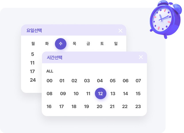 - 요일&시간대별 목표 순위와 입찰가를 상이하게 설정 가능