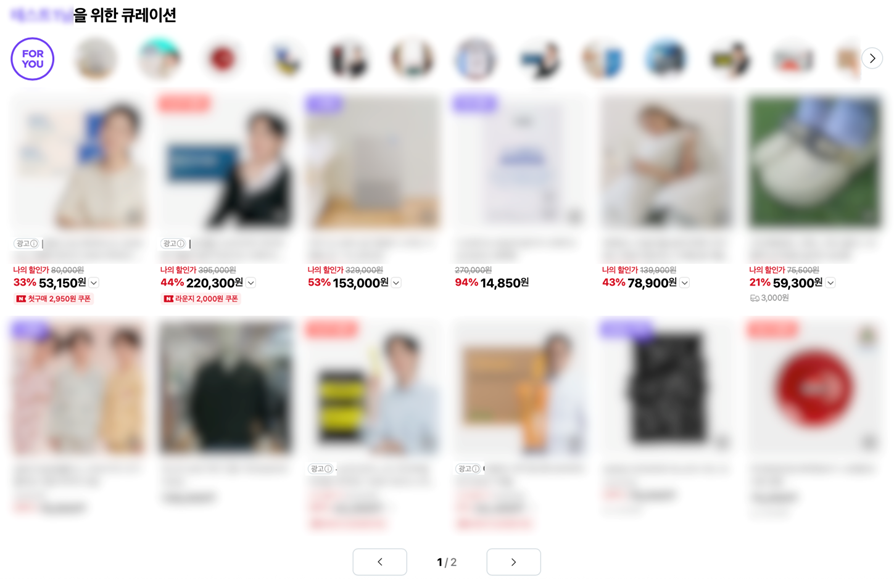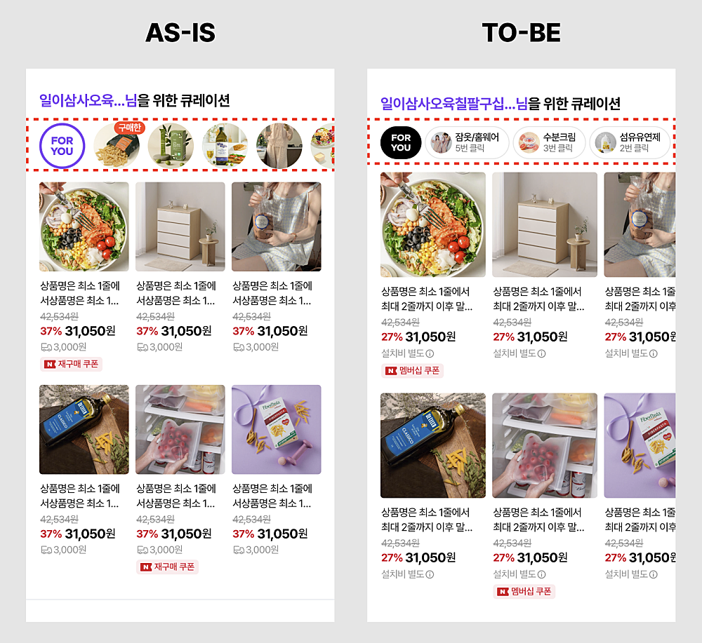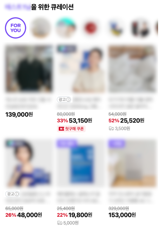■ 테스트 영역 - 네이버플러스 스토어 홈 “OO님을 위한 큐레이션” 영역 (FOR YOU 탭)
