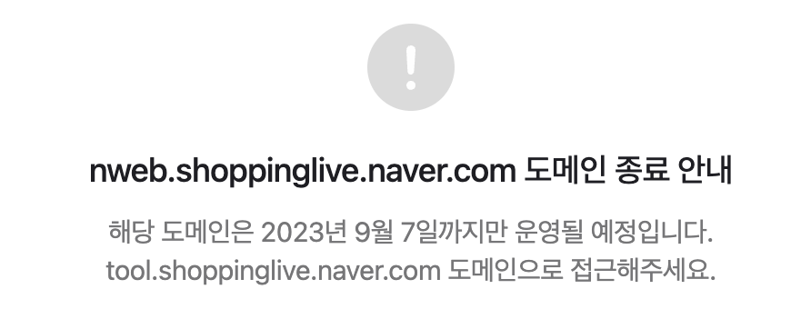 [NAVER] [쇼핑라이브] 웹관리툴 진입 도메인 (링크) 중 1개 서비스 종료 안내